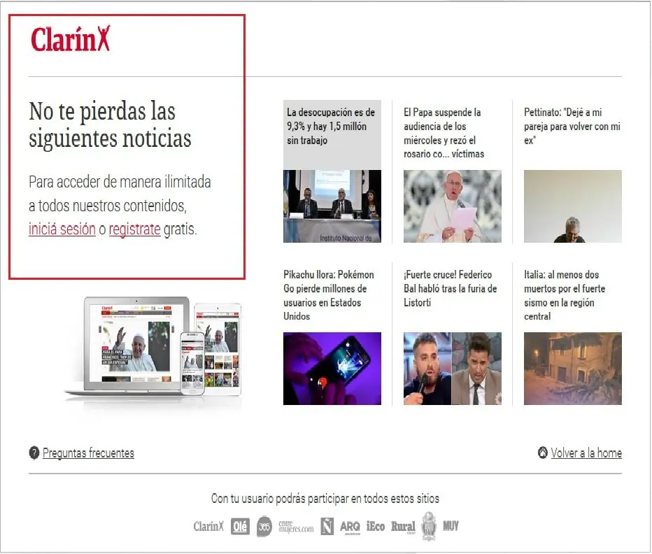 Se acabo leer anonimamente Como suelo hacer de vez en cuando, decidi entrar a leer el diario Clarin. Al principio bien, la portada bien, pero luego... Intento entrar a leer una nota en particular y para mi sorpresa, no me deja! Me pide registrarme o ingresar con mi cuenta de facebook o Gmail, ademas de que al querer ingresar con alguna de las cuentas, aparece la advertencia de que "clarin" tendra acceso a mis datos de contactos y etc etc etc. A opinion personal me parece pesimo, no puedo leer algo estando en el "anonimato" digamosle asi. La portada Normal Pero al querer leer la nota: y para finalizar la advertencia de aprobacion, olvidate. Nos vemos, me voy a leer otro diario!. Gracias por Pasar...