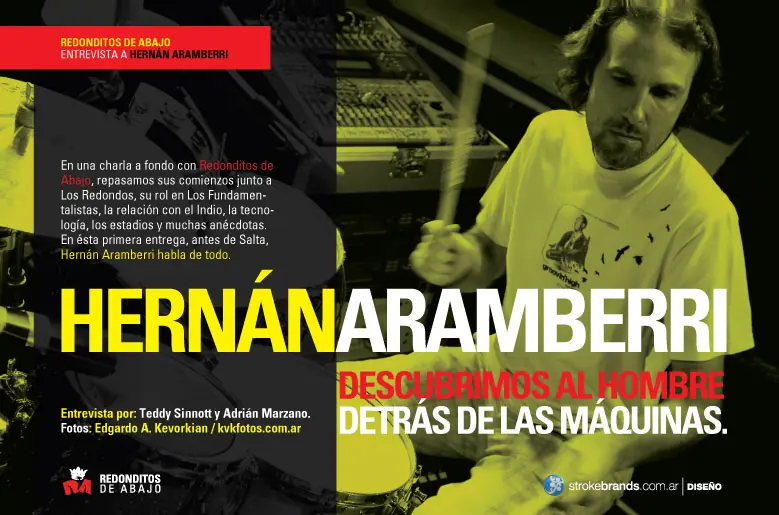Como te conectas con Los Redondos? En el año 91 /92 empezaron a llegar a la Argentina instrumentos de percusión electrónica, que en ese momento estaban en pleno crecimiento en Estados Unidos y las marcas empezaron a convocar bateristas para que promovieran el uso de esa tecnología acá. Entonces, un importador decide traer la marca Kat, instrumentos de percusión electrónica, que en ese momento eran los mejores que había. Yo ya venía, desde el 80 y pico, jugueteando con máquinas, etc., cosas mucho más rudimentarias. La casa de música muy reconocida, “Drummer” (solo de bateristas) me conocían y sabían que yo estaba vinculado con las máquinas y cuando aparece esta persona buscando información me contactan con él, nos ponemos de acuerdo y el me da una cantidad de instrumentos para que yo vaya probando, investigando, y le dije “La verdad que están excelentes, es una marca increíble, muy buena”, incluso hoy en día los sigo usando. A partir de ahí esta empresa empezó a captar diferentes bateristas, para que empiecen a utilizar y a difundir, a modo de publicidad, estos instrumentos. Empezaron a aparecer músicos que querían usar las maquinas, J. Morelli, Los Pericos, Los Auténticos Decadentes, ese año fue el regreso de Serú Giran y Moro, el baterista los usó también, en base a programaciones mías. En un momento aparece Walter (Sidotti) y dijo que quería hacer algo con el tema de las baterías y lo electrónico, para mejorar el sonido, aunque no tenía bien en claro lo que se podía hacer, entonces nos juntamos un día en Drummer y yo lo asesoré sobre que aparatos le servirían y me pidió que si en lugar de darle el curso que en ese momento se incluía con la compra de cualquier equipo, podía ir directamente al estudio, ya que estaban laburando ahí, le dije que no había problemas y combinamos para ir. Yo no tenía idea de que banda era, apenas conocía a Los Redondos, de haber escuchado algún tema en la radio (recuerda a Barbazul y Superlógico), yo en ese momento tocaba jazz y ya me dedicaba a la enseñanza, al mismo tiempo atendía a todas la bandas que se interesaban en estos aparatos y estaba un poco alejado de tocar. Me conecto nuevamente con Walter y me cuenta que estaban en Del Cielito, coordinamos y me fue a buscar un asistente del estudio, porque no era tan fácil llegar, me subí y nos fuimos. Llegamos ahí y te podes imaginar que yo no conocía a nadie, y siempre me acuerdo, había una señora… sentada ahí, muy simpática…era Poli (risas), y bueno, ellos ya habían grabado unas demos, entonces lo que querían hacer era ver si se podían reemplazar los sonidos de batería por otros mejores, eso se podía hacer, pero era un laburo…. Y ninguno de ellos obviamente iba a estar capacitado para hacerlo, entonces dije: se puede hacer esto, se puede hacer lo otro, estuvimos probando un poco y me acuerdo que Semilla me decía “Bueno bueno, pero decime como se usa” y no es que en dos minutos se aprende... Yo creo que la info, como todo, salió del Indio, porque el quería que las cosas sonaran mejor y de algún lado debe haber sacado la información, y debe haber dicho “Walter... anda y fijate...” La cuestión es que después de las pruebas, que le habían gustado, me dicen que van a tener un show en vivo, y Skay me pregunta si yo me animaba a programar en vivo, yo ya lo venía haciendo profesionalmente, así que ese fue el punto de partida. El show fue el del Centro de Exposiciones en el ’92, y paralelamente tenía unas entradas para ver un concierto “Tributo a Miles” mis músicos favoritos totales, y sabes cuándo era el día del show de Los Redondos? (pregunta, mientras comienza a sonreír) , ese mismo día obviamente (dice como lamentándose) y yo con mi mejor cara de piedra lo agarro a Skay y le digo, “Mirá esta todo bárbaro, yo voy y te armo todo, preparo todo, pero tengo ahí una entrada que no me la puedo perder…” entonces me dice que me maneje como quiera, que todo bien. Entonces convoco a un amigo compañero tecnológico mío, y le propongo que me cubra unas horas durante el show. Ese fue el famoso día que “la monada” corrió el escenario, cuando llegué mi amigo estaba desencajado, pensé que había sucedido algo con las programaciones. Y en ese momento no había celular… Claaaro.. ( risas) no había nada, yo me fui al otro show….y cuando vine el flaco estaba blanco, con pánico y le digo “que paso?” y me dice “No boludo… corrieron el escenario” y tuvo que salir el Vikingo, que era en ese momento el jefe de escenario a decir “Muchachos contrólense..”, era un show para 18.000 personas, y encima había un tinglado, supongo que con los años se había formado una crosta que estaba pegada al techo, y se ve que por el calor de la gente se empezó a desprender…y caían pedazos de esas cosas del techo, y no me olvido más que cayó arriba de la batería, que estaba toda cableada ,y Walter agarró y dio vuelta el ton, ese que estaba serigrafiado por Semilla, y lo empezó a sacudir, ahí con todos los cables, el trigger pegado… y esa fue la prueba de fuego, (risas) Pasaron esos dos shows, salió todo bien y ahí empezaron con la grabación de Lobo Suelto, Cordero Atado y me proponen si quería participar en la grabación. Lo que no sabía es que me iban a “secuestrar” ahí en Del Cielito, por veinte días ( risas ) , me llama un día Walter y me dice “Bueno, nos encontramos en un rato, lo que sí, llevate un bolso porque mira que nos quedamos ahí (risas) Y en el estudio había que hacer como una pre-producción con la batería para después empezar a laburar los sonidos, ahí tuve unas comunicaciones con Breuer, que era el Ingeniero de sonido para ponernos de acuerdo. La anécdota es que en la planta alta del estudio había dos habitaciones, una que era como el servicio militar, había varias camas una arriba de la otra, y la otra que era una habitación normal, en donde obviamente iban Po