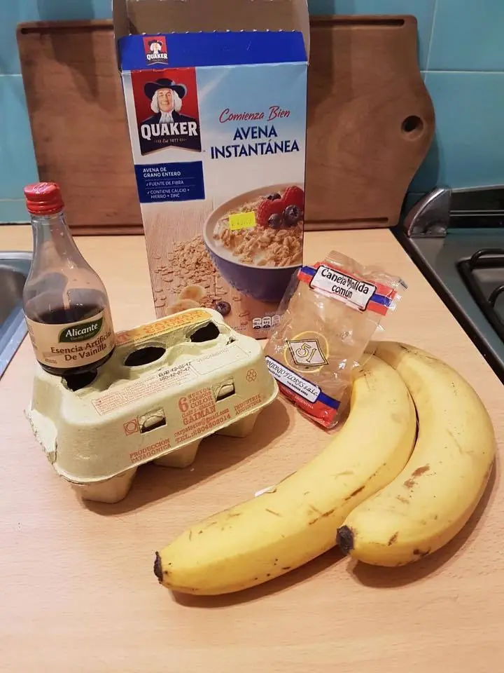 Hola gente, hoy les traigo algo simple que está muy bueno para desayunar algo distinto y es bastante fácil de hacer. además no necesitas muchas cosas. Se hacen rapidísimo, tardás más en preparar las cosas que en la cocción misma. Esperé8i hasta hoy porque como no laburo, safo de comer una tostada a las apuradas. Ingredientes principales para 2 Pancakes de lindo tamaño: 2 Bananas 2 Huevos 1/2 cucharadita de polvo de hornear 1/3 de taza de avena instantánea Opcionales: canela, miel, crema batida, edulcorante, azúcar, Fruta. Arriba una vez terminados le pueden poner lo que quieran. Pisamos las bananas y una vez hecho el puré, lo mezclamos con los huevos, el polvo de hornear y la avena. Precalentamos una sartén, y rociamos con fritolin o lo que sea que usen, también puede ser manteca, pero es más bomba. Volcamos un poco de la mezcla y no lo movemos. Aprovechamos para ir preparando la mesa el juguito y el café con leche. Una vez que notamos que los bordes se ponen mas dorados y que no se mueve (gelatinosamente hablando) la mezcla, lo damos vuelta.. Esperamos un minuto más o menos y los servimos. Yo le tire un poco de canela por encima, unas frutillas y un poco de miel. Certificada Gracias por pasar!!