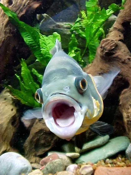Hola, hoy quiero presentarles a uno de los peces mas hermosos que es posible mantener en un acuario de agua dulce, incluso en nuestra casa. Elo aqui.....(cuak) Symphysodon aequifasciatus - Pellegrin, 1904 Nombre común: Discus, Disco, Pompadour (esta última apenas se usa ya). El término "aequifasciatus" alude a las 9 barras iguales, en oposición a S. discus (Heckel), cuya quinta barra es más ancha que las otras. Clasificación: • Orden: Perciformes. • Familia: Cichlidae (Cíclidos). • Subfamilia: Cichlasomatinae. • Tribu: Heroini. Biotopo: Amazónico. Aguas muy blandas y ácidas, en zonas tranquilas con poca corriente. Distribución: Ampliamente distribuido en toda la cuenca del Amazonas, (Brasil, Colombia y Perú) con varias distribuciones geográficas y morfos de color que dan lugar a tres subespecies oficialmente admitidas: S. aequifasciatus haraldi (disco azul), S. aequifasciatus axelrodi (disco marrón) y S. aequifasciatus aequifasciatus (disco verde). Estas variedades suelen aparecer puras pero también aparecen frecuentemente cruces salvajes entre ellas e incluso entre S. aequifasciatus y S. discus (Heckel), que taxonómicamente sigue estando calificado como una especie distinta, pero cada vez parece más claro que se trata de la misma. Forma: Forma discoidal, comprimida lateralmente, muy característica y reconocible. Coloración: Muy variable. A las variedades salvajes antes descritas ahora hay que sumar una amplísima variedad de discos híbridos seleccionados en criaderos, principalmente asiáticos. Constantemente se lanzan nuevas variedades. Entre las más comunes y de buena acogida por los aficionados podemos citar Turquesa, Marlboro, Pigeon Blood, Cobalto, Blue Diamond, Snake-skin, Leopard, Fantasma... y un larguísimo etc. al que se suman nombres de fantasía inventados por los criadores. Dos variedades de cría iguales pueden tener nombres muy distintos según el criador del que procedan. Tamaño: Hasta 18-22 cm. Temperatura: 25º a 30º centígrados en libertad. En acuario no conviene mantenerlos por debajo de 27ºC ni por encima de 29ºC. Agua: Blanda o semiblanda. En su hábitat natural KH y GH son a menudo inexistentes. En acuario se alcanza un compromiso con KH=3ºd y GH=5-6ºd. pH entre 5.0 y 6.5. Acuario: Teniendo en cuenta que su gran tamaño (y que este es el mismo de ancho que de alto) y su territorialidad, hay que destinar a estos peces acuarios muy espaciosos (40-50 l por pez). Como, además, se deben de mantener en grupo, el acuario mínimo para discos deberá contar con un volumen mínimo de 200-400 litros. Se pueden ubicar parejas de cría en acuarios desnudos de 80 a 120 litros, pero las parejas han de elegirse libremente, dos discos colocados al azar, aunque sean macho y hembra, no constituyen una pareja. No se pueden tener dos discos solos, porque uno de ellos domina sobre el otro y le hostiga de tal manera que le hace la vida imposible, impidiéndole comer y estresándolo hasta hacerlo enfermar o morir. Mínimo hay que tener 3 para que se repartan las agresiones... o conseguir una pareja ya formada, comprobada y compatible, pero son muy caras (casi nadie vende sus parejas formadas), así que es preferible inicrase con un grupo de 4-7 discos en un acuario de las dimensiones apropiadas (200-400 litros en adelante). Alimentación: Básicamente carnívoro con una dieta muy completa y de alto valor proteíco y vitamínico. No es un pez que se pueda mantener sólo con escamas comerciales. Su alimentación es bastante exigente y debe estar basada en papillas específicas complementadas con pienso granulado, alimento congelado (artemia, larvas, dafnias) o alimento vivo. Comportamiento: Gregario y territorial. Pese a ser un cíclido pácífico vive en grupos con un marcado carácter jerárquico, por lo que los ejemplares que ocupen el último lugar en el escalafón pueden sufrir mucho si no cuentan con el suficiente espacio donde protegerse de los ataques de los dominantes. Ficha realizada por: Jorge las Heras Variedades Domesticas de Discos Turquesas Pigeon, Golden y derivados Azules sólidos Rojos sólidos Leopard y otras variedades punteadas Snakeskin Blancos/Albinos Otros Video link: http://www.videos-star.com/watch.php?video=kqTngil79cg Fuente:http://atlas.drpez.org/Symphysodon Fuente:http://atlas.drpez.org/discos_hibridos Eso fue todo por hoy y espero que les haya gustado....