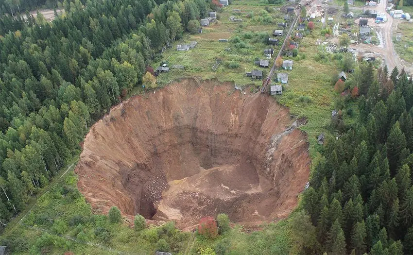 hola gente linda de taringa regrese después de tanto tiempo los extrañaba mucho . bueno . sin tanto preámbulo empecemos ... esta info la encontré por la web . y tenia ganas de compartirla con esta hermosa comunidad Ocurre en la ciudad de Solikams, donde los habitantes debieron abandonar sus viviendas ante un agujero de 50 metros de diámetro en el que cayeron varias construcciones. La apertura de un enorme cráter en el medio de una zona urbanizada en la ciudad rusa de Solikamsk lleva tragándose literalmente casas y otras construcciones poco a poco desde hace diez meses. La explicación que los científicos han dado a la formación de este enorme agujero es la inundación de una mina subterránea que la compañía Uralkali estaba explotando bajo el suelo de este pueblo. Los responsables de la empresa minera aseguraron que el cráter no suponía ningún peligro para la localidad, o más bien, para lo que quedaba de ella. Sin embargo, el diámetro del agujero ha ido creciendo poco a poco desde entonces tragándose mes a mes las casas que habían quedado en pie. El pueblo ha sido completamente evacuado una vez que el fenómeno ha probado estar fuera de control, pasando de los 30 metros de ancho con los que había aparecido en noviembre de 2015 a los 125 metros actuales. En la foto que puedes ver debajo de estas líneas se recoge una comparativa que muestra el crecimiento del agujero durante estos diez meses.