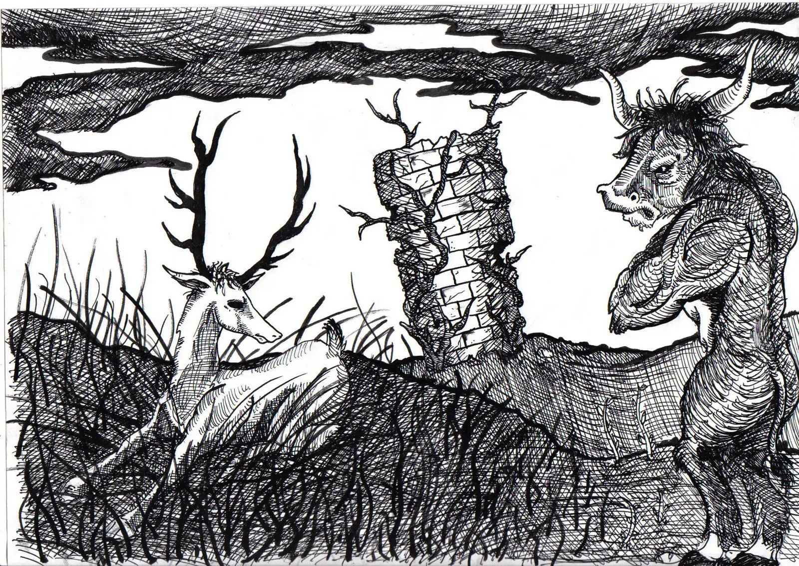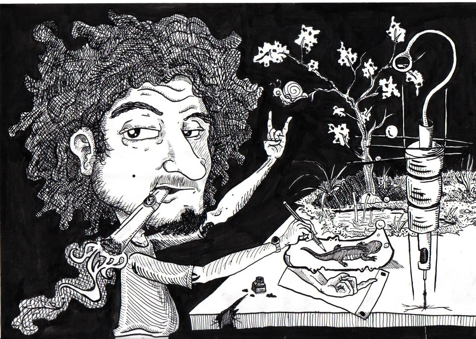 No puedo parar de dibujar con el Plumin y la tinta china. Lo que mas me gusta de esta técnica es que me permite manejar muchos los detalles dentro del dibujo, ni hablar del contraste de los claros u oscuros que se logran mediante el tramado del trazo.