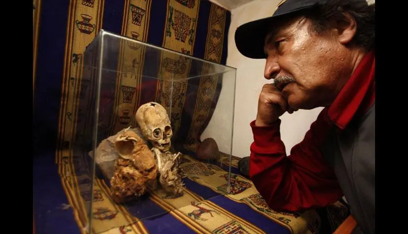 Asimismo, dijo que también tiene cráneos con el frontal divido y eso no existe en ningún grupo étnico en el mundo, ya que solo se ha encontrado en los andes del Perú, al igual que el hueso de los incas que es un triángulo que está en el occipital y también solo existe en los andes del Perú.