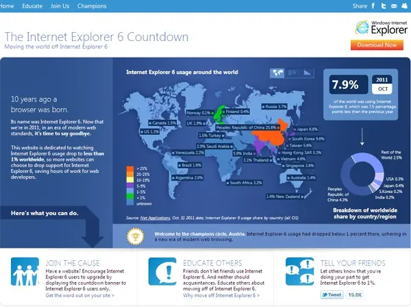 Hasta la misma Microsoft lanzó una fuerte campaña online para que los usuarios actualicen sus sistemas: The Internet Explorer 6 Countdown .