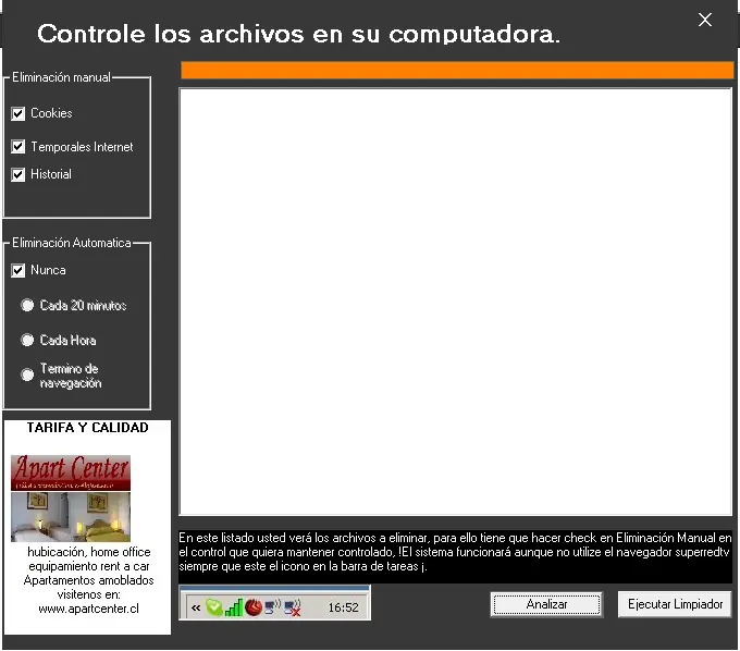Mini ccleaner que puedes programar para que te elimine el historial,temporales y cookies cada una hora o 20 min