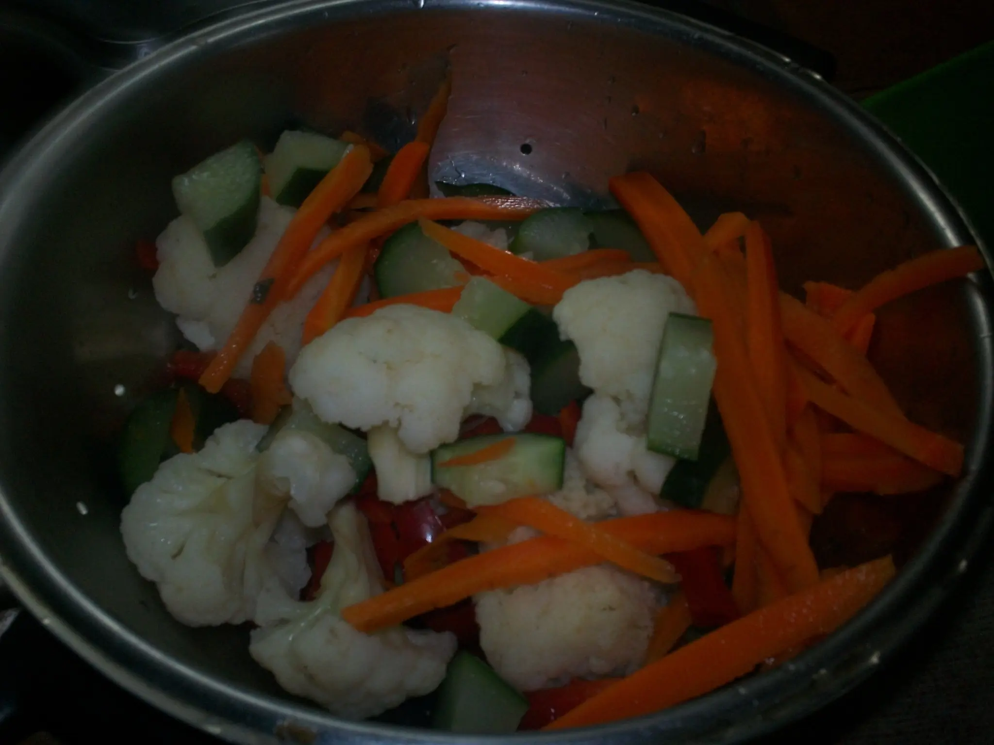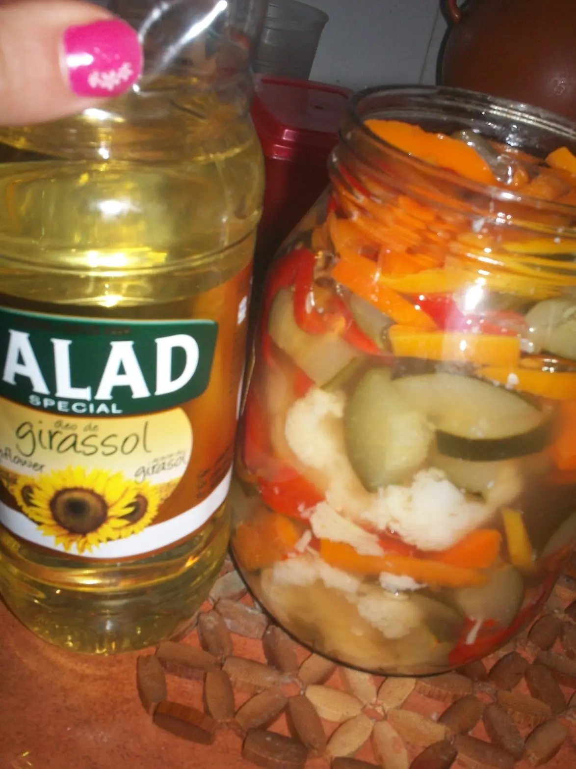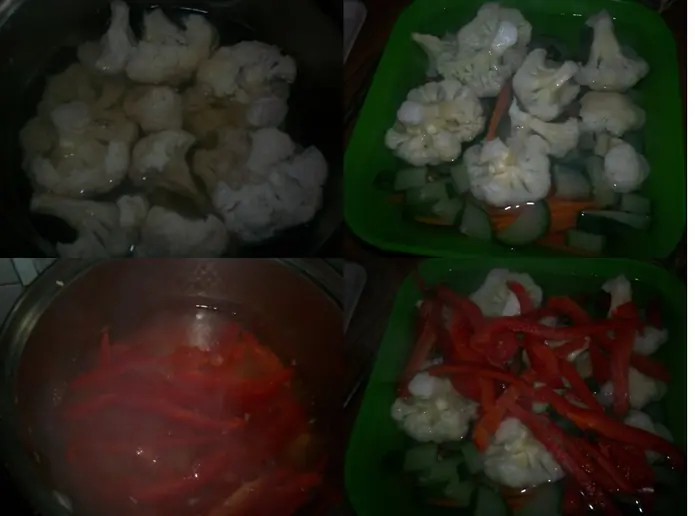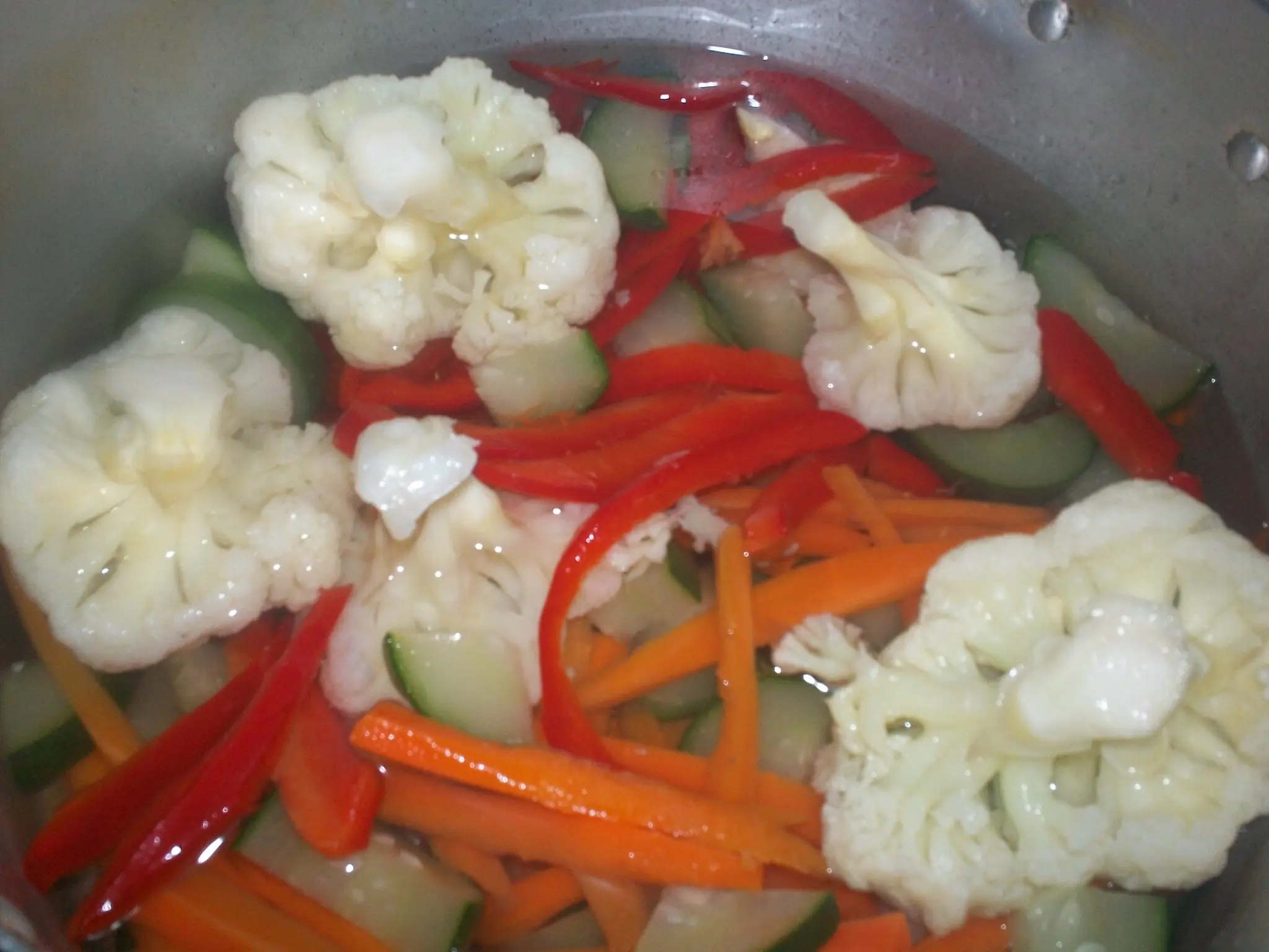 Y ponen en la olla las verduras y ponen el vinagre hasta tapar las verduras!