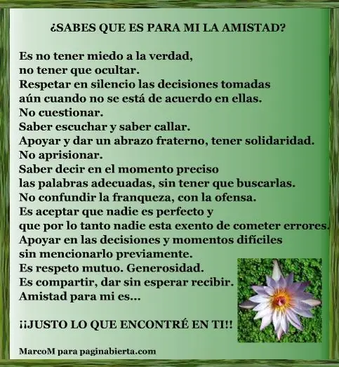 · Amistad, cuidado con la palabrita que una palabra jamas termina de tomar significados.