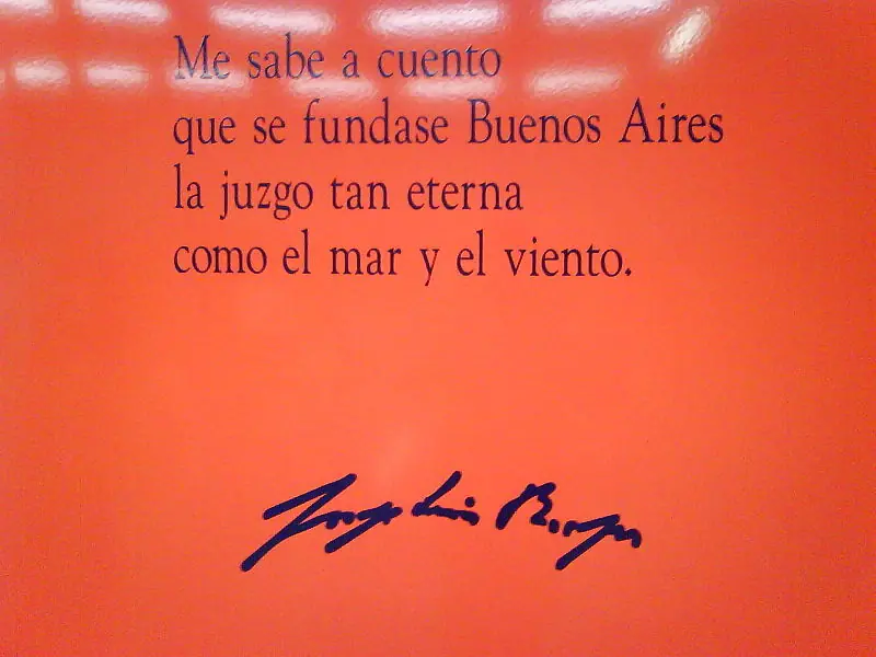 Poema de Borges y firma del escritor. Estación de metro Buenos Aires de la ciudad de Madrid. Agosto de 2007.