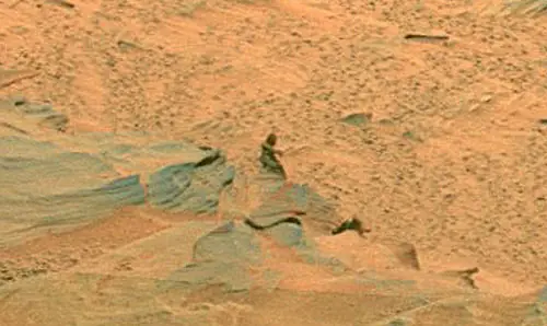 Los entusiastas de la vida extraterrestre, sin embargo, se frotan las manos al examinar lo que parece ser una figura alienígena que camina colina abajo. Un tiempo atrás, una formación rocosa llamada “la cara de Marte” mostraba lo que parecía una cabeza humana mirando al cielo.