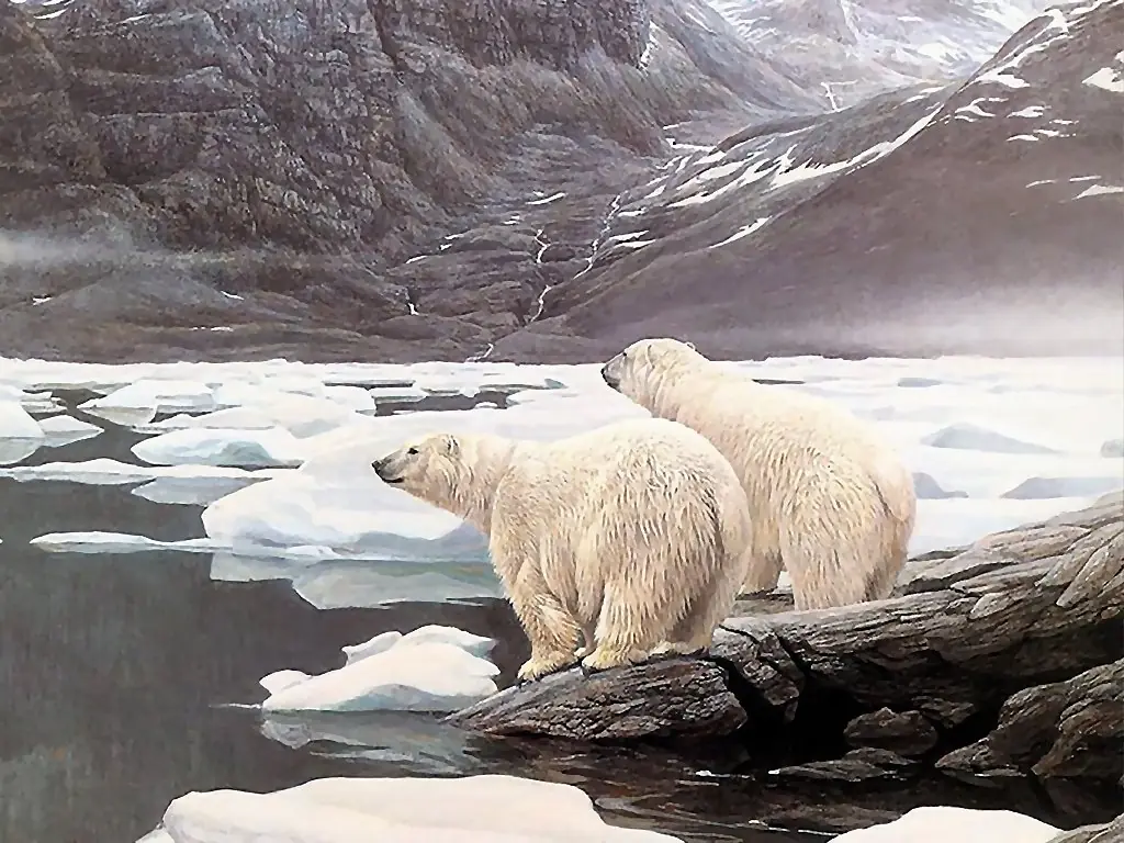 Sólo las hembras preñadas buscan refugio durante el invierno (aunque no hibernan), dando a luz una o dos crías durante el invierno en un refugio excavado en el hielo. El resto de los individuos siguen siendo activos a pesar de la oscuridad y frío extremo que reinan en el ambiente y vagabundean a la búsqueda de comida sobre la plataforma helada. Las madres no comen nada durante este periodo, sino que viven de la grasa que han acumulado en su cuerpo durante el invierno, mientras que los cachorros se alimentan de la leche materna. Esto ocasiona en las madres una fuerte pérdida de peso, que deben recuperar durante el verano.