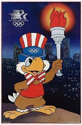 Los Ángeles 1984. Sam, un águila calva, símbolo nacional de los Estados Unidos. Fue diseñado por Robert Moore y Disney.