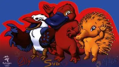 Sydney 2000. Para celebrar estos Juegos fueron creados tres animales: Olly, una cucaburra, cuyo nombre provenía de Olimpíada; Sid era un ornitorrinco que provenía de la palabra Sydney; y Millie, el equidna, cuyo nombre representava el nuevo milenio. También se creó una mascota no-oficial que se hizo bastante popular debido a un programa de televisión: Fatso, el wombat