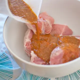 Volcamos todo en la carne. Limpiamos el mortero con agua y lo añadimos.