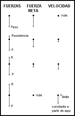 Por una parte está la fuerza con que lo atrae la Tierra, el peso, y por otra, la fuerza de resistencia que ejerce el aire(1)