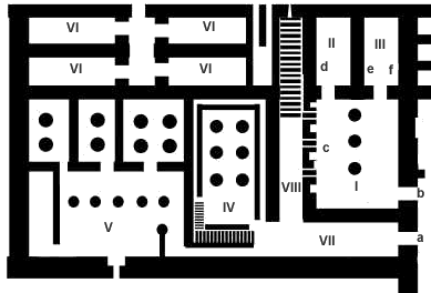 Sala de ofrendas líquidas. Esta sala comunica con la parte exterior a través de una puerta por la que se introducían las ofrendas líquidas que venían del Norte.