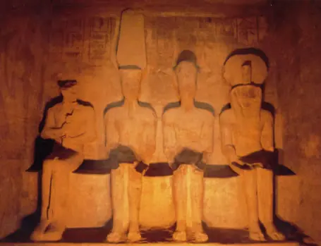 Ptah, Amón-Ra , Ramsés II divinizado y Ra-Horajti