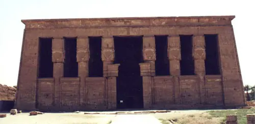 Al igual que el de Edfú representa un típico ejemplo de edificación del periodo ptolemaico. Se encuentra orientado hacia el Nilo, que fluye de este a oeste, por lo que su orientación real es al norte, pero para los egipcios representaba, de forma simbólica, el este hacia el que generalmente se orientan los templos, como dejaron escrito en las inscripciones que aparecen en él.