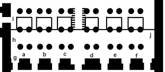 En los muros traseros de la sala se incluyen nuevas representaciones, en dos registros, del rey junto a diferentes divinidades: (i) Seguido por Mut, ante Ptah, en una capilla, escribiendo el nombre el rey, y Sejmet, (j) Thot escribiendo el nombre del rey en presencia de Osiris y el rey, seguido por Harsiese e Isis, recibiendo el heb-sed de Osiris, (k) recibiendo la doble corona de Horus y el ureo, sistro y un collar menat de Isis. Además en la parte derecha aparecen nuevas representaciones de nomos del Alto Egipto.