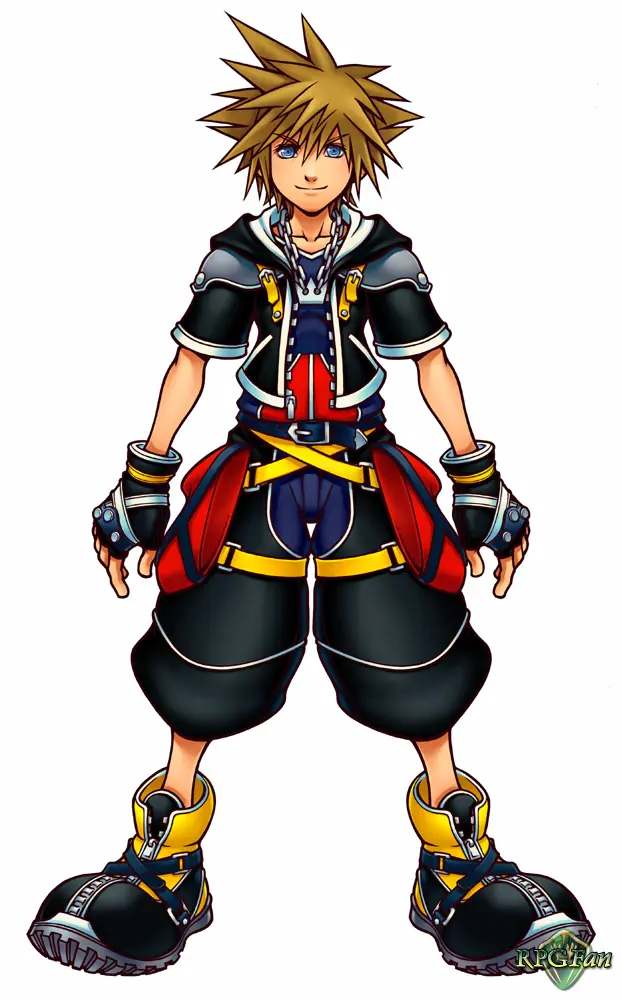 Artwork de Sora en KH.Sora tiene catorce años al inicio de Kingdom Hearts y vive en Islas Destino junto a sus mejores amigos Riku, Kairi, así como Selphie, Tidus y Wakka. Sora y sus amigos más cercanos están planeando construir una balsa para descubrir lo que hay más allá de sus islas, así como el pasado de Kairi, quien llegó al lugar misteriosamente. Pero una noche, cuando todos los preparativos para el viaje estaban hechos, una extraña fuerza oscura azotó la isla. Sora obtuvo aquí la Llave Espada. Tras acceder al Lugar secreto y 'perder' a Kairi, Sora se dirigió al islote de Riku, que fue engullido por la oscuridad mientras le tendía la mano a Sora. Tras un combate, Sora se despertó en Ciudad del Paso.