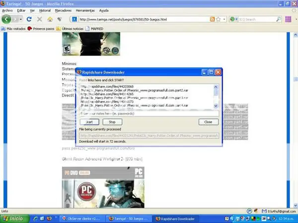 Solo tenés que copiar todos los link que quieras descargar de Rapidshare y los pegás en esta utilidad, le dás a "Start" y listo, el programita hace todo solo, espera el tiempo que hay que esperar para la descarga y comienza... después sigue con los demás link, uno a uno.