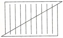Ahora, al contar las líneas, comprobamos que solamente hay 9. Una de ellas ha desaparecido, pero carece de sentido preguntarnos cuál de ellas ha sido la que se ha desvanecido. La realidad es que las 10 rectas iniciales quedaron repartidas en 18 trozos al cortarlas por la diagonal de la ficha, y no en 20 como sería de esperar. Y esto es así porque un extremo de la primera línea coincide con la diagonal, de tal manera que no la parte en dos. Igual que ocurre con la última.