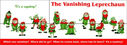 Y eso es lo que ocurre en un famoso rompecabezas conocido por The Vanishing Leprechaun Puzzle, diseñado por el canadiense Pat Patterson, en el que un duendecillo aparece y desaparece a nuestra voluntad.