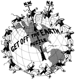 Pero no todas son lineales, también las hay circulares como Get off the earth puzzle, una de las paradojas ópticas más populares, inventada por el creador de enigmas y acertijos estadounidense Sam Loyd, en 1898.