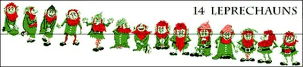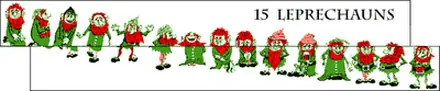 La tarjeta está partida en tres trozos: uno inferior y dos superiores. Y muestra 15 duendecillos.
