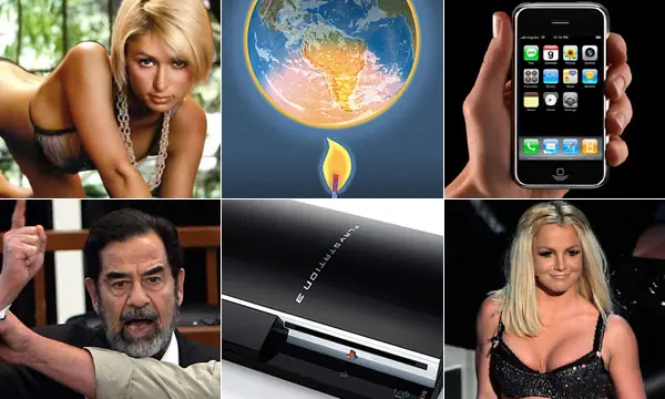 Esto no quiere decir que no abundaran las habituales búsquedas sobre celebridades. Este año, la atención se centró en aquellas con dificultades: la cantante Britney Spears, que perdió la tenencia de sus hijos, fue la más solicitada, seguida de la mediática Paris Hilton, que debió pasar unos días tras las rejas, y la ex conejita de Playboy Anna Nicole Smith, hallada muerta en un hotel en febrero.