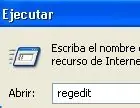 4.- Si este método no da resultado, podemos hacerlo también de forma manual, siguiendo los siguientes pasos: Desde el botón Inicio -> Ejecutar -> Regedit para ejecutar el Editor de Registro del sistema de Windows.