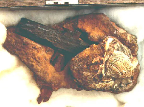 - Incrustado en una roca escocesa procedente del Devónico (Mesozoico, 408 millones de años atrás) se encontró el Martillo de Kingoodie. Su presencia allí aún no ha sido justificada.En esta pagina (en ingles) hay un analisis que refuta el objeto como oopart.