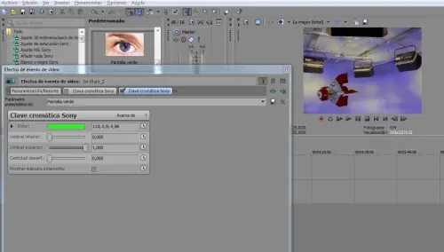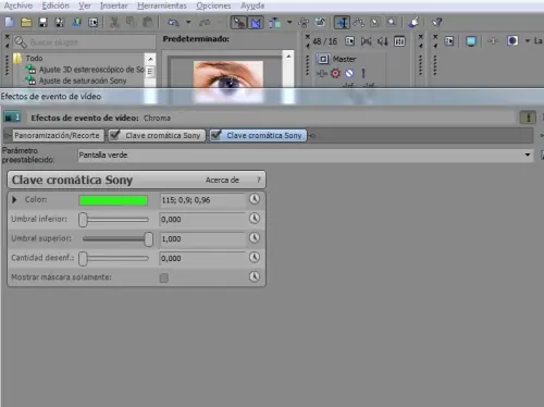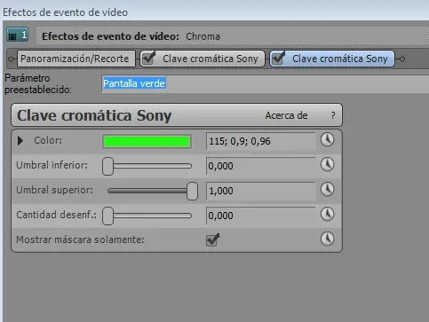 Nos dirigimos a “Efectos de Video” seleccionamos el efecto “Clave Cromática Sony” y seleccionamos “Pantalla Verde”.