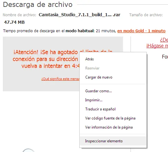 Es normal que cuando intentas descargar de depositfiles aparezca un mensaje como el siguiente: