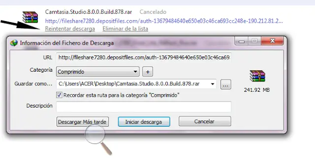 y luego seleccionar "reintentar descarga", esta ves IDM retomara la descarga, pero sin errores
