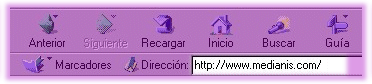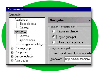 Inicio -- Le lleva a la página de inicio especificada en las preferencias del explorador.