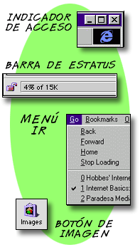 Menú Ir A -- Le permite seleccionar una página web a la que accedió previamente.