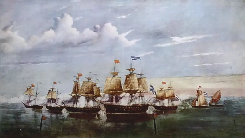 Una vez en tierra, en la margen izquierda del arroyo de las Vacas, se adentraron un poco alejándose de la orilla. Los nativos estaban emboscados, esperándolos, y como una avalancha cayeron sobre ellos con boleadoras y macana, y los apalearon y despedazaron hasta matarlos a todos, con la única excepción del joven grumete Francisco del Puerto, que se salvó y quedó cautivo con los indígenas.
