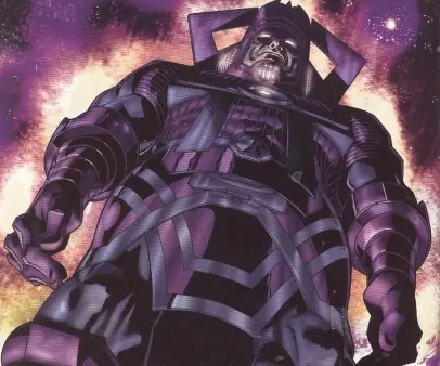 7. Galactus (Marvel comics) Galactus es un ser cósmico que necesita consumir planetas para calmar su hambre, por lo que recurre a la ayuda de heraldos que él mismo nombra. Asimismo, ha sido descrito como una fuerza que el Universo necesita para su propio equilibrio. Es considerado una de las tres fuerzas fundamentales del universo. Al ser una fuerza cósmica, sus acciones no pueden ser consideradas como malas en el contexto humano; así como no se puede juzgar a un huracán. Galactus es considerado como el dios espacial, una divinidad cósmica y de hecho es el prototipo de todos los seres cósmicos que vinieron después de él.