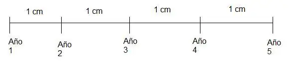 Bien, hasta ahí asocié el largo (1 cm) con el tiempo (años), ahora vamos a dibujar la cuarta dimensión.