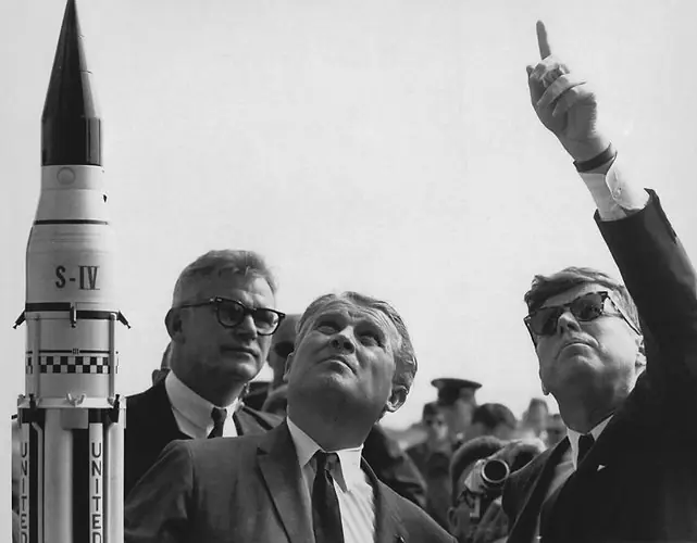 John F. Kennedy junto al Dr Wernher von Braun,el creador del cohete Saturn 5(Noviembre de 1963)