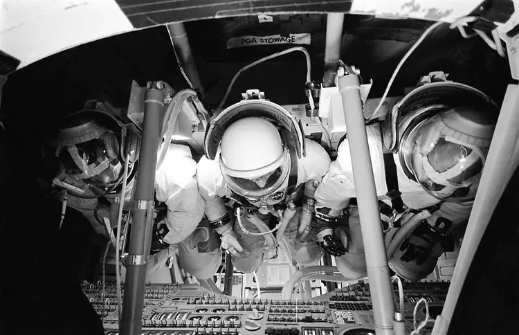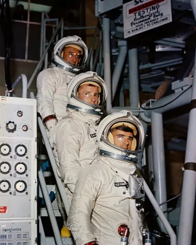Virgil "Gus" I. Grissom, Edward H. White II, and Roger B. Chaffee ,astronautas de la primera mision tripulada,APollo 1(originalmente llamada Apollo 204).Lamentablemente murieron en un incendio durante unas pruebas previas al vuelo