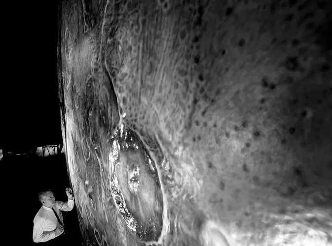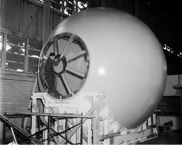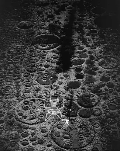 Simulador LOLA(Lunar Orbit and Landing Approach),una esfera de unos 60 metros en las cuales los astronautas simulaban estar en la superficie lunar,con un costo de 2 millones de dolares.(2)artistas recrearon la superficie lunar dentro del LOLA.(3)Una prueba se lleva a cabo dentro de la misma