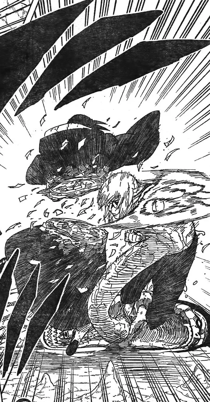 Después observa como Kabuto utiliza sus serpientes para atacar, siendo informado por Sasuke de que estas las utiliza para detectar el chakra y prevenir el Genjutsu, llamando a su hermano el doctor serpiente, luego, ve cómo Kabuto agranda sus serpientes para atacar y, junto con su hermano, usa su Susanoo para defenderse y contraatacar, finalmente, Sasuke agarra a Kabuto, sin embargo, solo era su capa, y Kabuto, estaba escondido bajo una serpiente, que, junto con las demás que invocó, son atacadas por los hermanos Uchiha, Kabuto, tras ser atacado, alega que pudo obtener las habilidades de todos los miembros de Taka convertirse en sus fluidos como Suigetsu, tener una gran resistencia con Karin y la capacidad de absorber cualidades de la naturaleza, tras esto, afirma haber ido a la Cueva del Dragón. Kabuto, trata de materializar su cuerpo, pero es atacado por una flecha de la Ballesta de Susanoo de Sasuke, sin embargo, el discípulo de Orochimaru lo esquiva y se termina de materializar diciendo que es un Sabio.