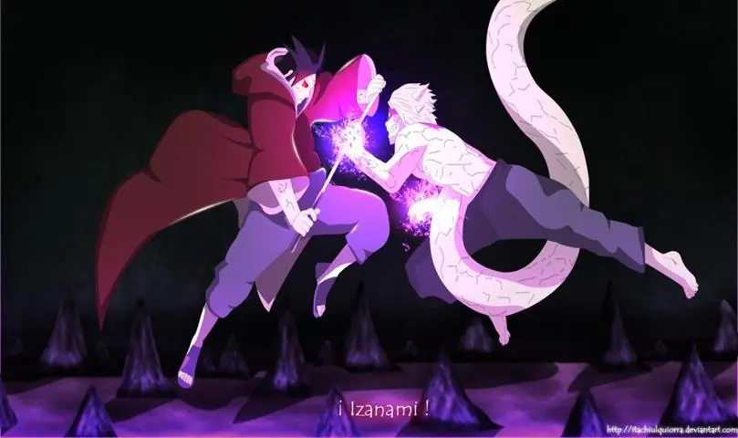Una vez cortado en dos Itachi engaña a Kabuto activando el Izanami sin que se diera cuenta, repitiendo los mismos ataques de Kabuto hacia Itachi. Éste mismo le pide a Sasuke que se aleje de la batalla, acto seguido Kabuto dice que esto es como un Déjà vu y que va a terminar con la batalla a lo que Itachi le contesta que tiene su destino en su manos. Kabuto ataca con la serpiente blanca de Orochimaru y éste lo detiene con su Susanoo, pero Kabuto sale de la boca de la serpiente blanca y le corta un brazo a Itachi con la boca, pero Itachi utiliza sus cuervos y desaparece cortándole un cuerno, dándose cuenta Kabuto de que ha caído en la técnica de Itachi, y vuelve a conjurar el Izanami y Kabuto lo atraviesa con una espada, a lo que Itachi vuelve a desaparecer con sus cuervos y volviendo a cortar el mismo cuerno de Kabuto, y admitiendo que Kabuto no puede escapar de ese bucle.