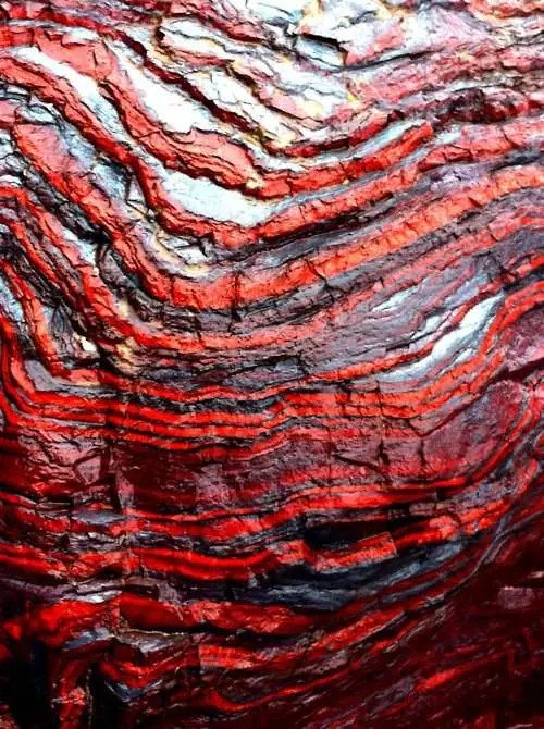 Agata de fuego, una variedad de Calcedonia, es una piedra semi-preciosa que puede ser encontrada en algunas areas de Mexico y Estados Unidos. Estas gemas fueron formadas durante el intenso vulcanismo que ocurrió durante el Terciario cuando el agua caliente saturada con sílice (tetraedros de silicio y oxigeno) y oxido de hierro llenó grietas y fisuras en las rocas de caja.