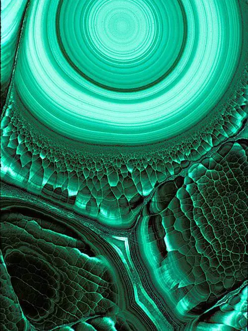 La Malaquita, es un carbonato de Cobre, y tiene formas lobuladas o mejor dicho globosas, los cristales únicos son raros aunque si existen.