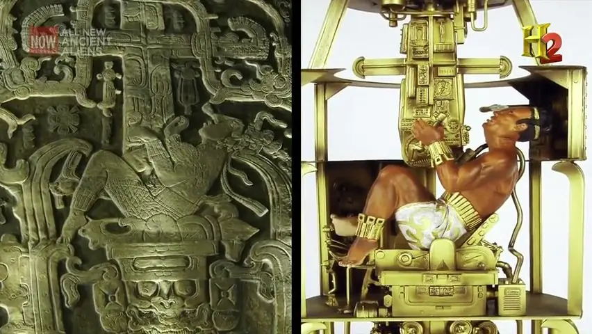 Este es el famoso astronauta de Palenque que cada tanto desempolvan los ufólogos para probar que los extraterrestres nos visitan desde hace mucho tiempo. Aseguran que se trata de un extraterrestre pilotando una cápsula espacial.