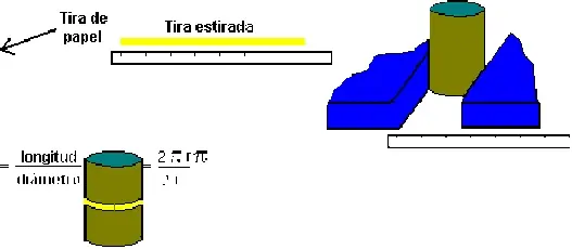 Rodea la lata con la tira de papel y corta lo que te sobre o haz una marca en la tira.Sitúa la tira sobre una superficie horizontal y mide su longitud o hasta la marca sidecidiste no cortar la tira. Mide el diámetro de la lata. Puedes situarla entre dosobjetos y luego medir la distancia entre ellos. El cociente entre las dos medidas esel número.