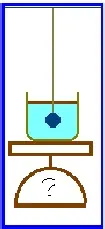 En una báscula hay un vaso con agua. Si introducimos en el agua una bola colgada deun hilo sin que llegue a tocar el fondo del vaso. ¿Cambiará la lectura de la báscula?