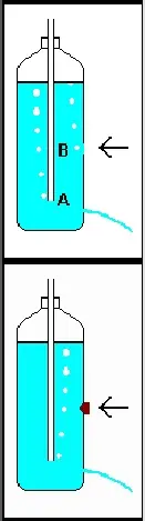 3.De los dos puntos anteriores se deduce que la presión en el punto B esmenor que la atmosférica. Por lo tanto entra aire en lugar de salir.Se puede comprobar fácilmente con una botella de plástico, una pajita de refresco,un poco de plastilina y algo para hacer agujeros.